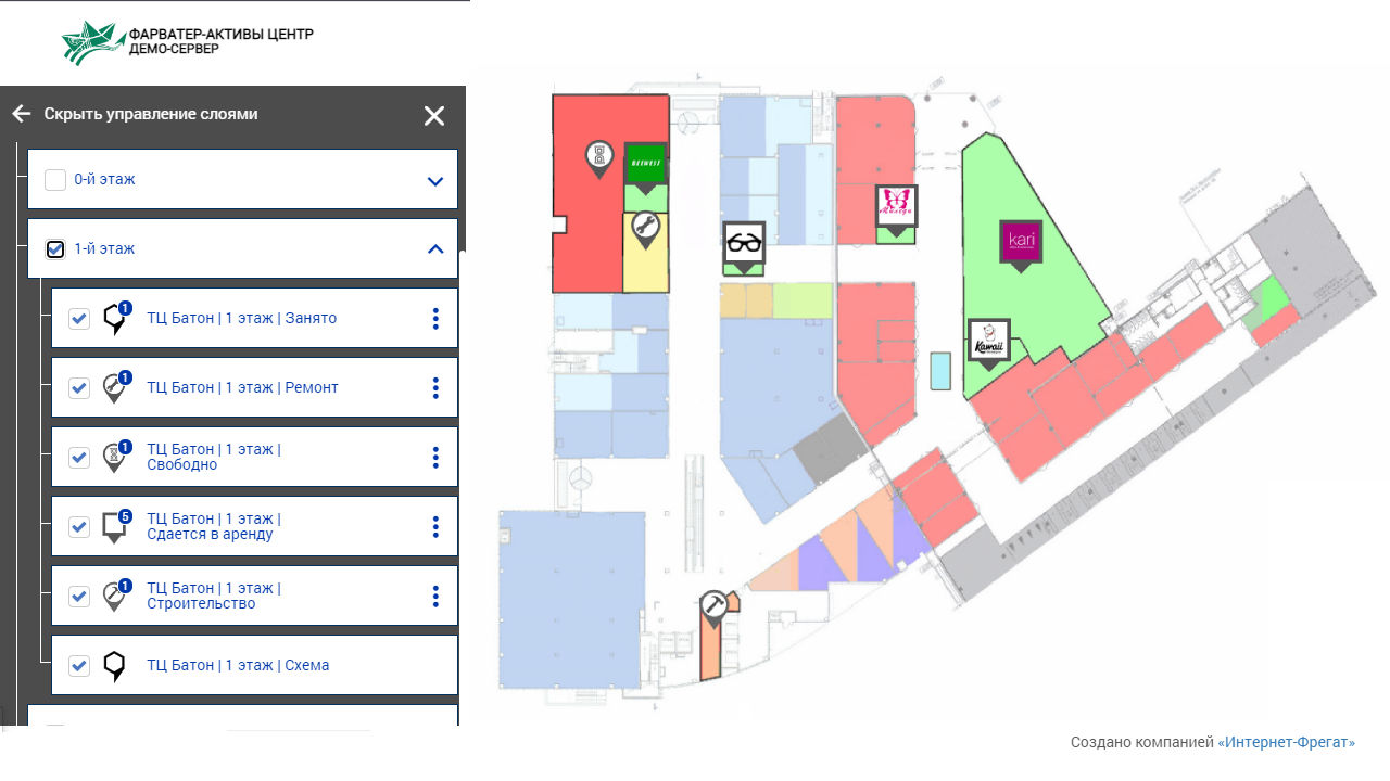 Работайте с интерактивными планами этажей, размещайте объекты на планах с помощью встроенного редактора. Создавайте публичные планы и внедряйте их на публичный сайт ТЦ.