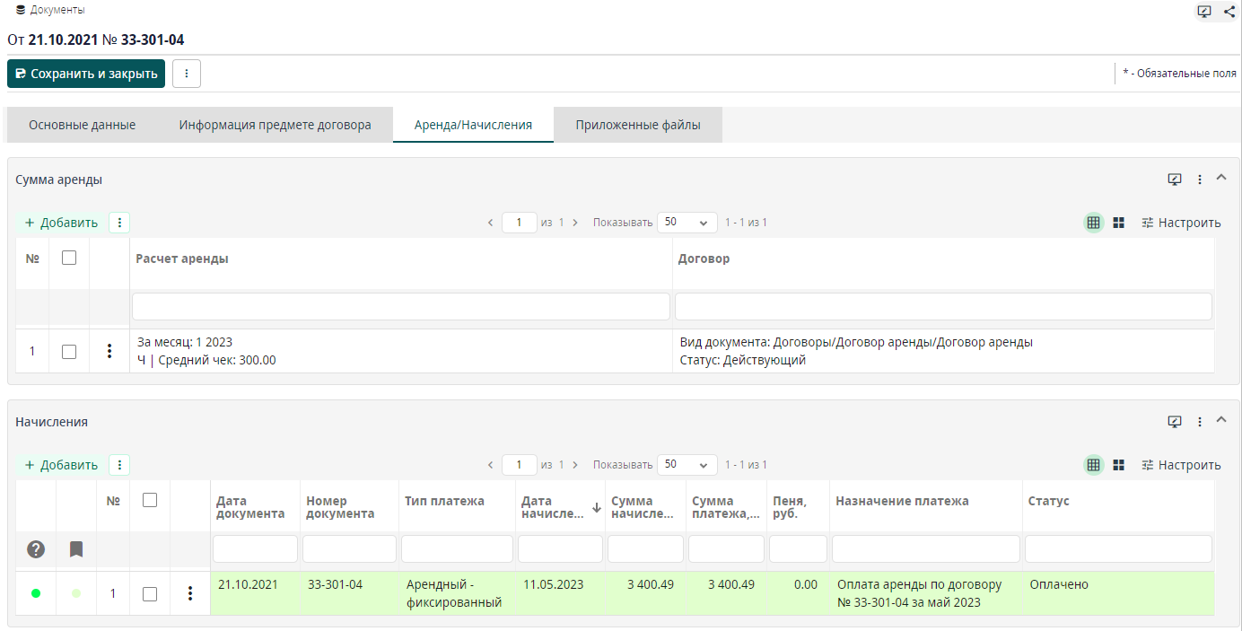 Автоматизируйте расчёт сумм арендной платы (различными методами расчёта), выставляйте начисления и отслеживайте их оплату.